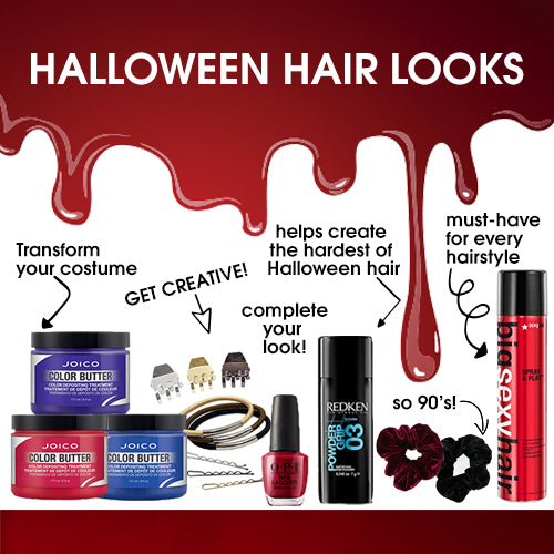 So I assume you're here because you either can't figure out the right accessories to spruce up that awesome costume you already have OR you need a last minute idea! Well, we're to help so no need to panic. We rounded up some of our top products that we think will help styling your hair become a total breeze this Halloween season!