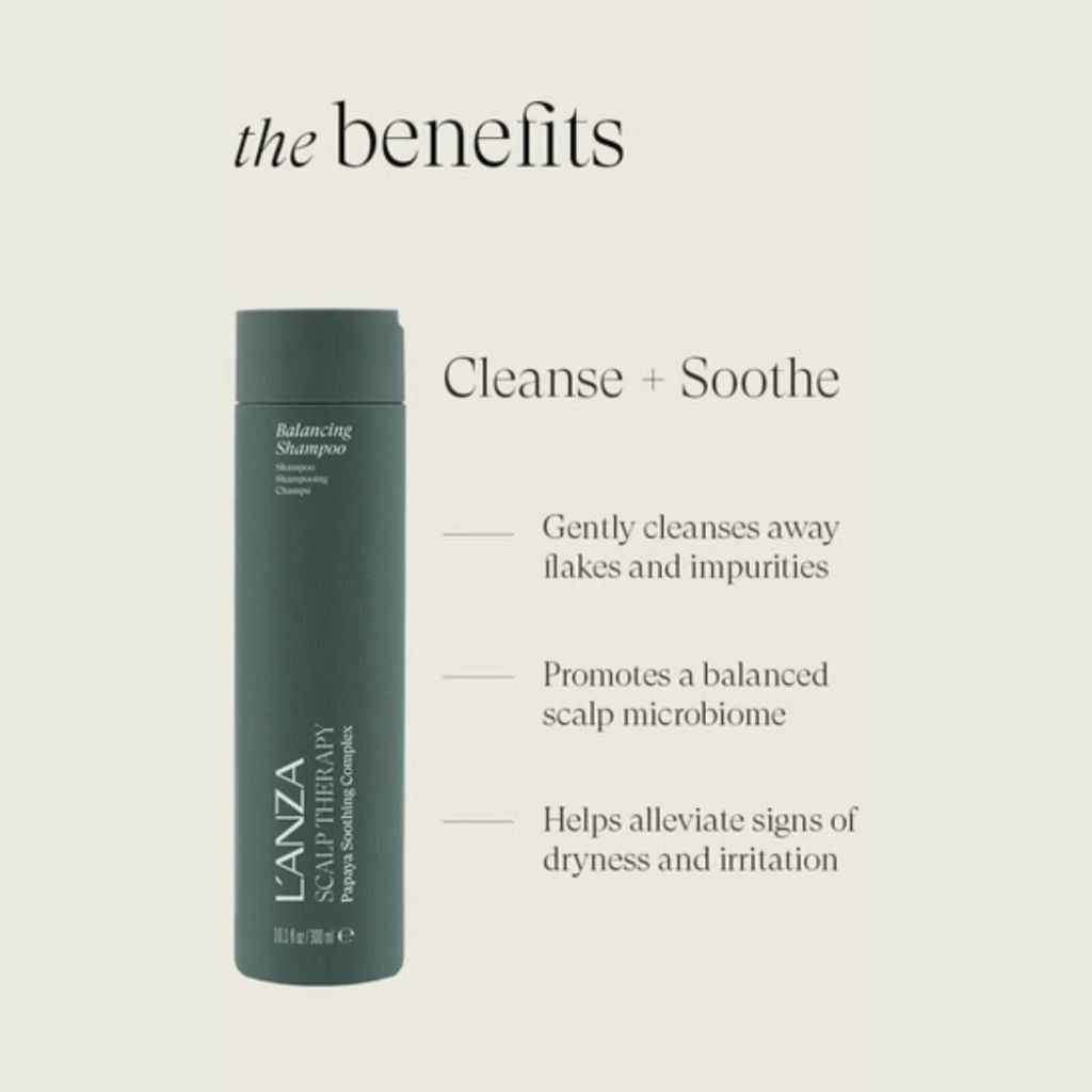 This balancing shampoo gently cleanses the scalp while soothing signs of dryness and irritation for healthier-looking hair. A soothing papaya complex balances the scalp with a proprietary blend designed to calm irritation and promote a healthy microbiome. Gentle botanical extracts help relieve dryness, itching, and flaking while promoting long-lasting comfort and scalp health.