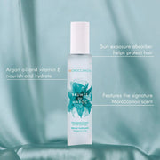 A lightweight fragrance mist featuring a blend of spicy amber and sweet floral notes. Perfect for spritzing on hair and skin. Brumes du Maroc Hair and Body Fragrance Mist features the signature Moroccanoil scent, an exotic blend of spicy amber and sweet floral notes. The lightweight, hydrating formula contains argan oil and Vitamin E, as well as a UV absorber that helps prevent hair damage from sun exposure.