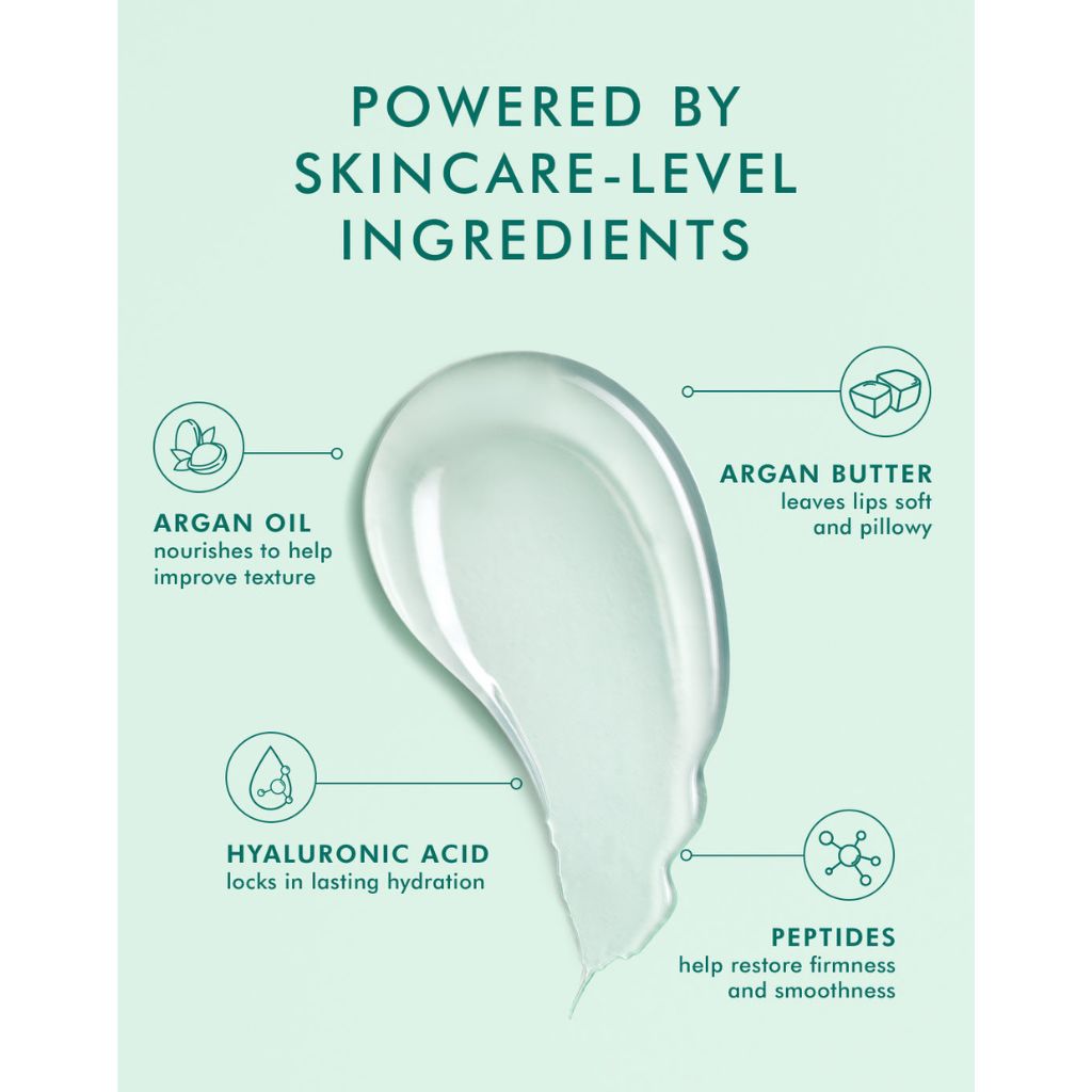 Skincare for your lips, with a Mediterranean twist. With argan oil, argan butter, peptides, and hyaluronic acid, this nourishing formula delivers instant hydration with no sticky feel. Lips are left soft and smooth, with a subtle shine. Clinically proven to provide up to 24 hours of hydration after 1 application, based on an independent lab study.