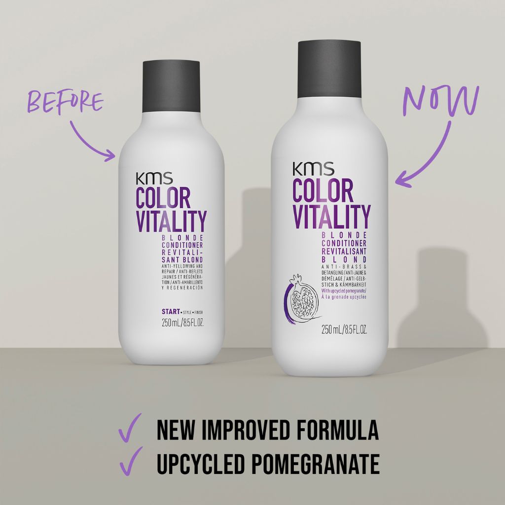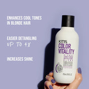 HOW TO USE: Apply a dime-sized amount to shampooed hair, focusing on the mid-lengths and ends. Gently massage through hair. Wait 1-2 min. Rinse. For best results, use with KMS Colorvitality Blonde Shampoo